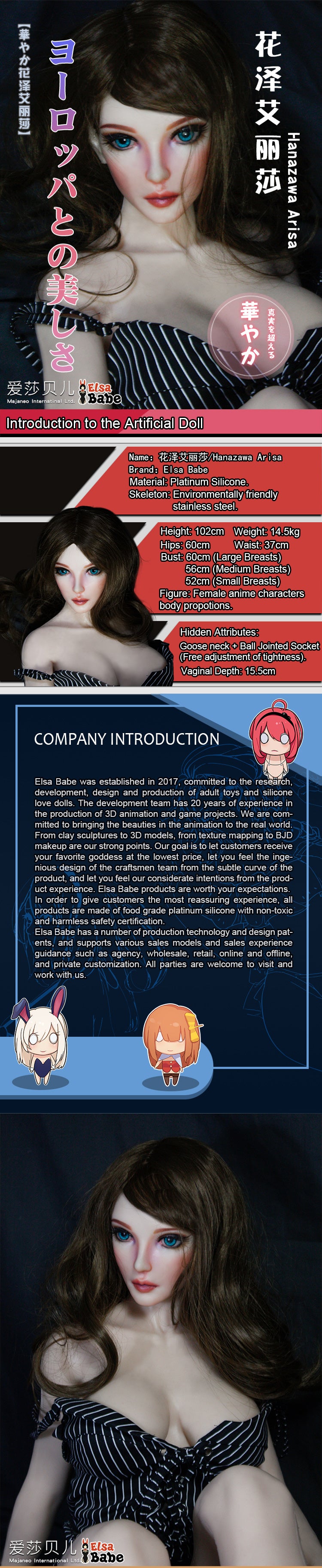 ElsaBabe 102cm ACG Doll Platinum Silicone Love Doll Adult Toy With Metal Skeleton, Hanazawa Arisa