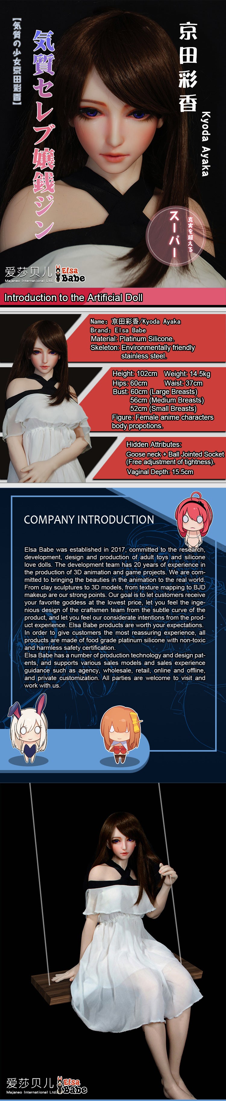 ElsaBabe 102cm ACG Doll Platinum Silicone Love Doll Adult Toy With Metal Skeleton, Kyoda Ayaka