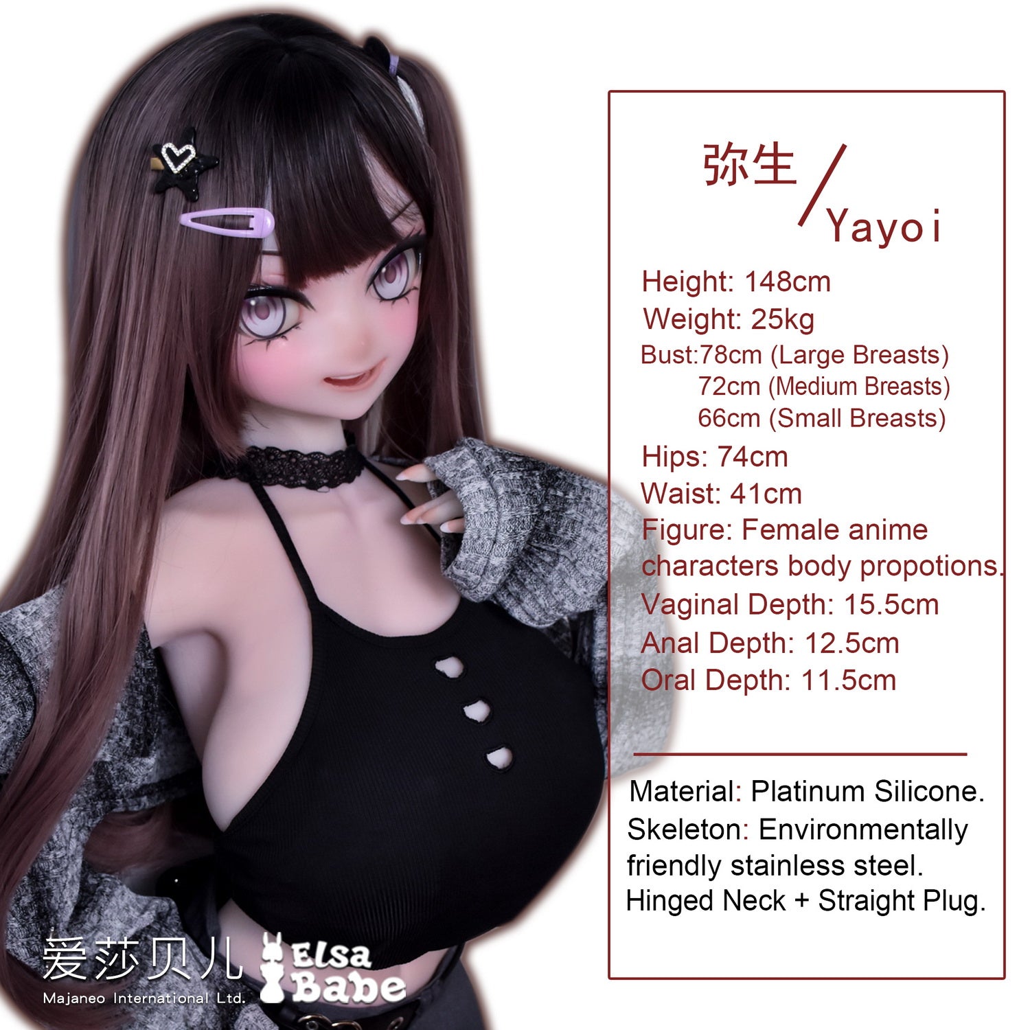 ElsaBabe 148cm Anime Doll Platinum Silicone Love Doll Adult Toy With Metal Skeleton, Koga Yayoi