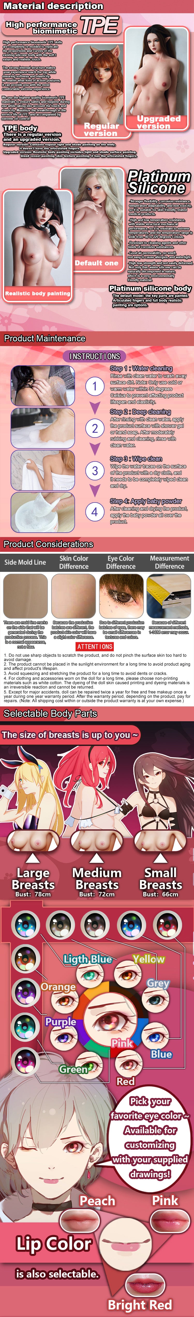 ElsaBabe 148cm Anime Doll Platinum Silicone Love Doll Adult Toy With Metal Skeleton, Nekoha Aya
